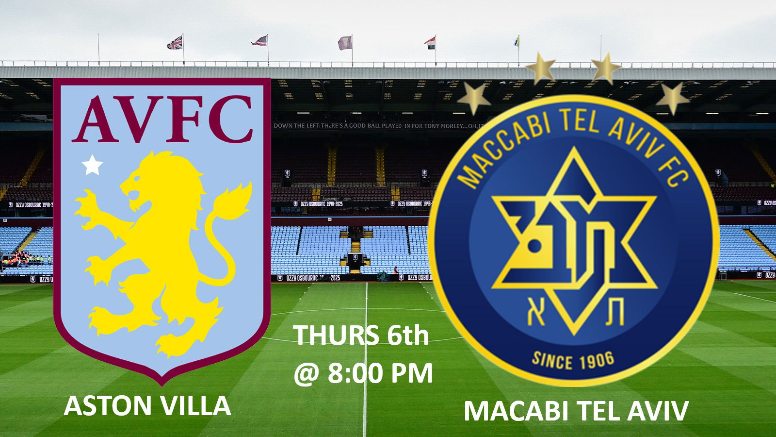 ASTON VILLA v MACABI TEL AVIV Thursday 6th Nov @ 8:00 pm Enjoy the game at The Red Lion