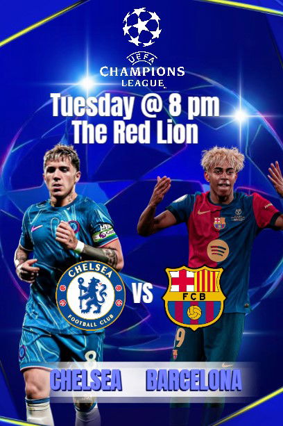 CHELSEA v BARCELONA Tuesday 25th @ 8 pm Enjoy the game at The Red Lion