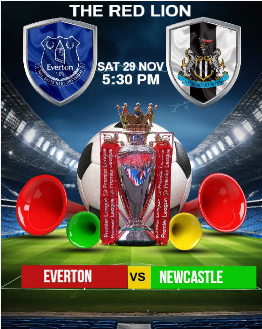 EVERTON v NEWCASTLE Saturday 29th @ 5:30 pm Enjoy the game at The Red Lion