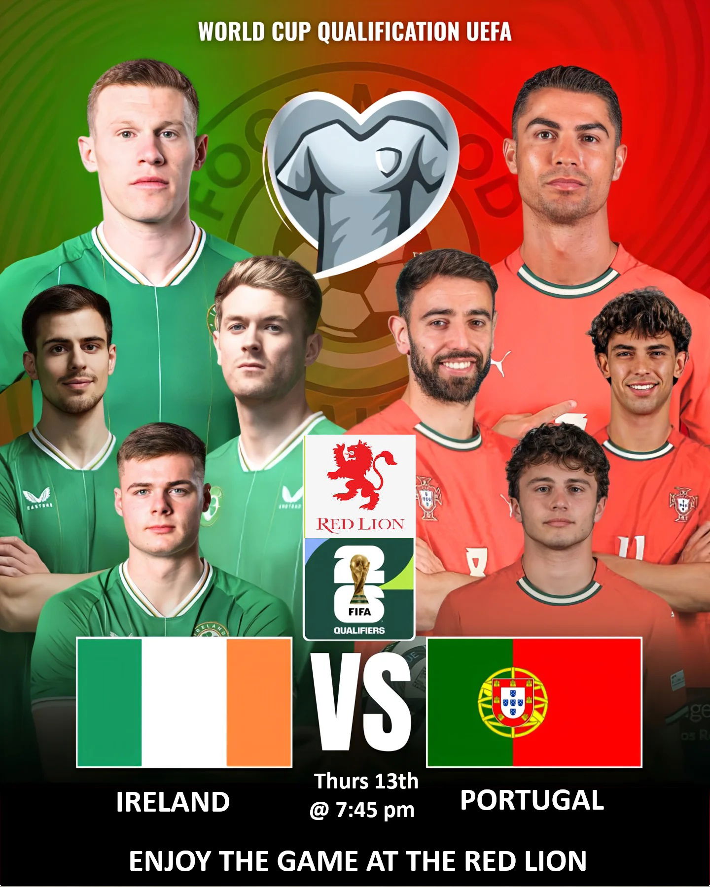 IRELAND v PORTUGAL Thursday 13th @ 7:45 pm Enjoy the game at The Red Lion