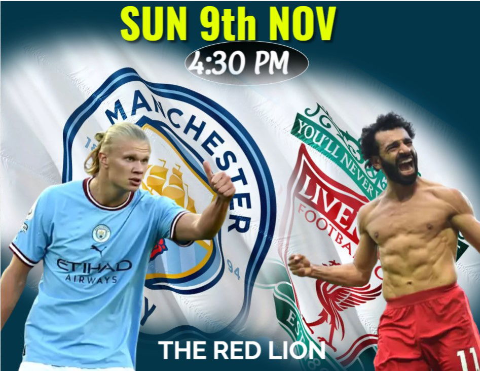 MAN CITY V LIVERPOOL Sunday 9th Nov @ 4:30 pm Enjoy the game at The Red Lion