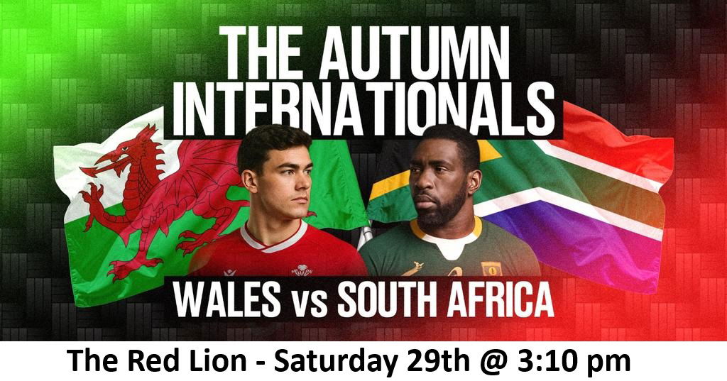 WALES v SOUTH AFRICA Saturday 29th @ 3:10 pm Enjoy the game at The Red Lion Great Pints & Great Craic
